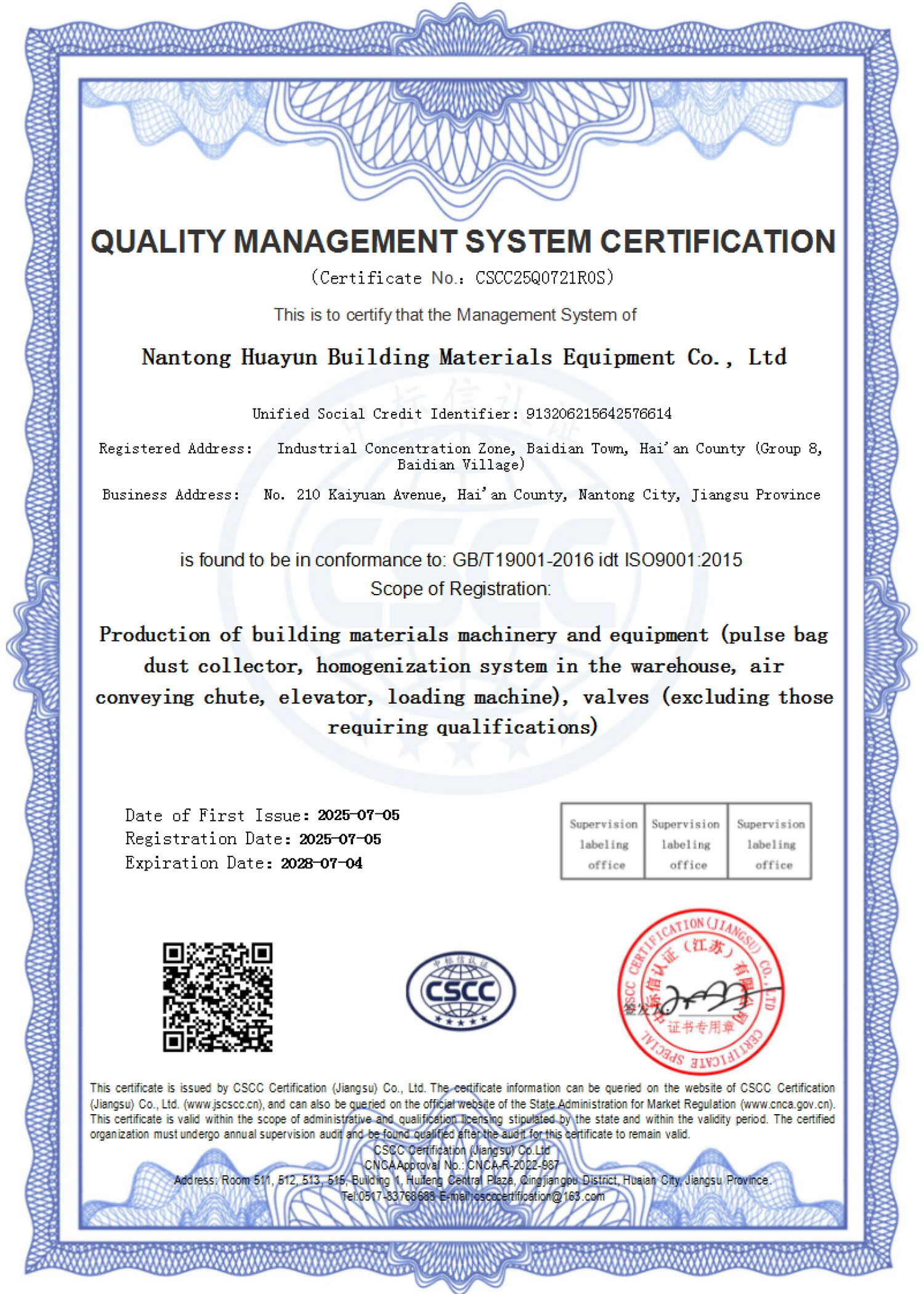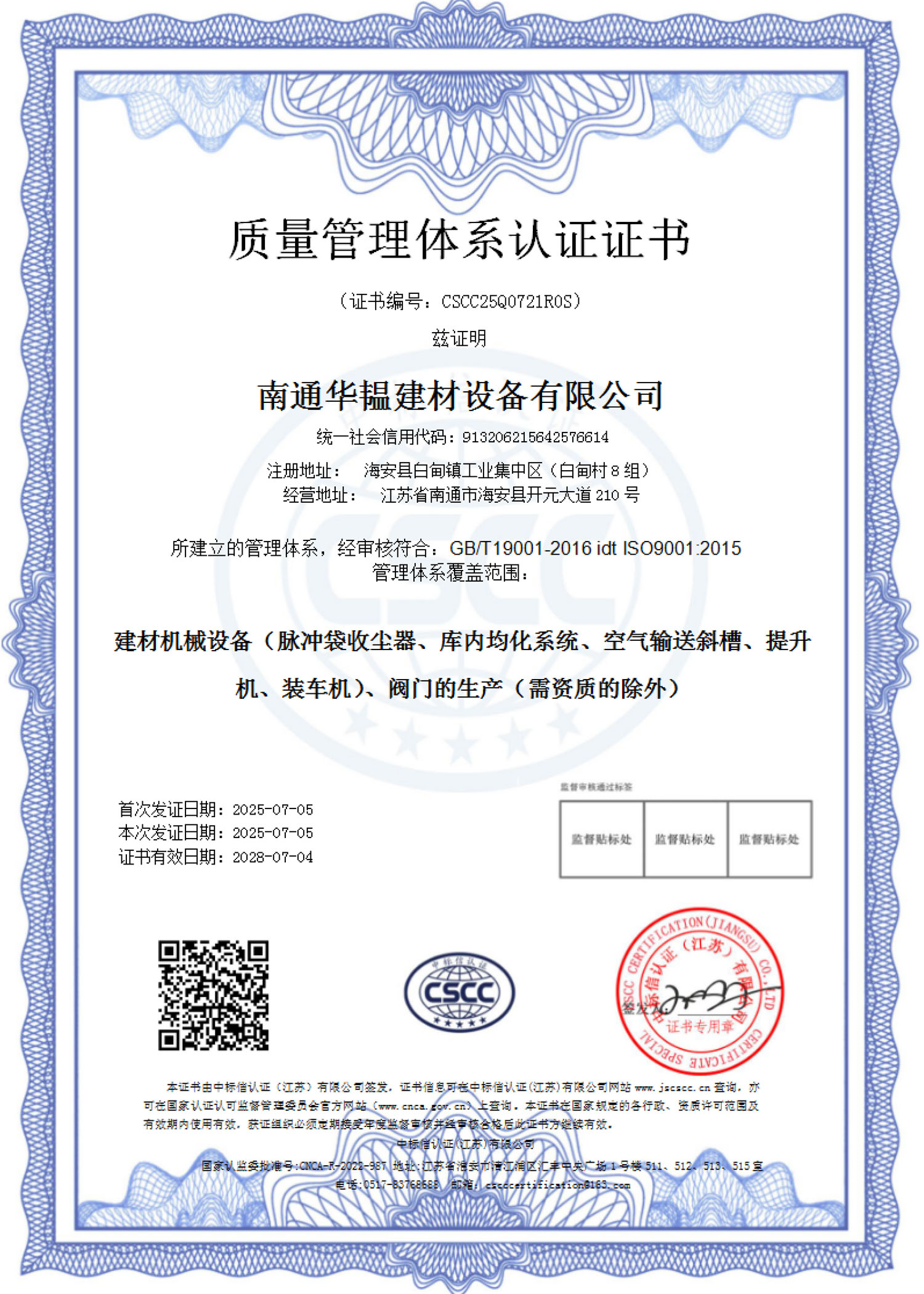 质量管理体系认证证书